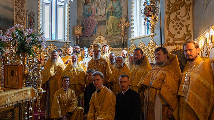 За Литургией возносились молитвы о упокоении исповедника веры митрополита Иосифа (Чернова), архимандрита Исаакия (Виноградова) – сподвижника и духовного сына митрополита Николая (Могилевского), православных христиан «в годину лютых гонений от безбожников умученных и убиенных, от голода, холода, ран, болезней и непосильных работ скончавшихся».