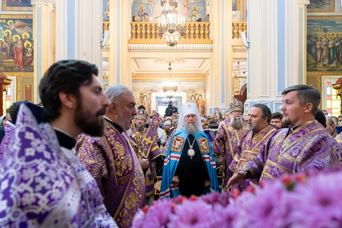 Митрополит Александр произнес слова благодарности за благопожелания и испросил у присутствующих в храме сугубых молитв о ниспослании благодатной помощи Божией в служении Церкви Христовой, после чего поздравил духовенство и верующих с праздником Воздвижения и произнес проповедь.