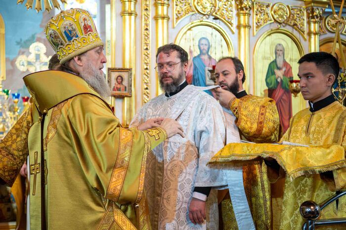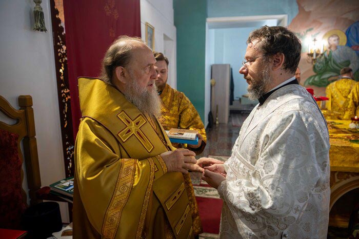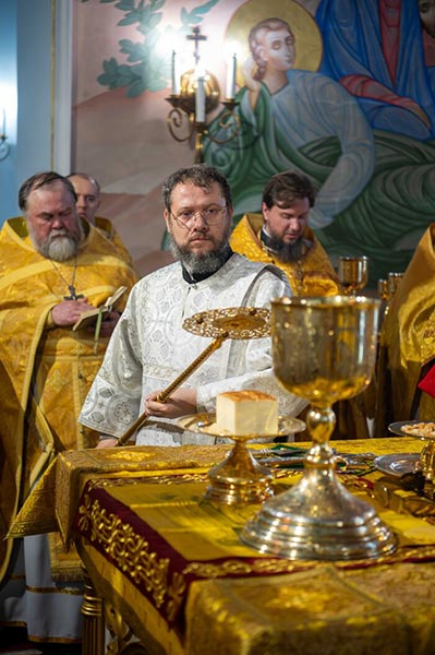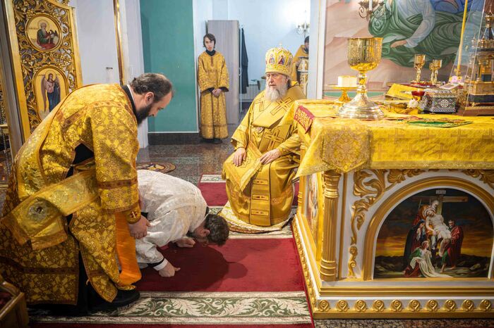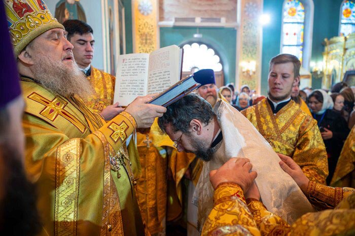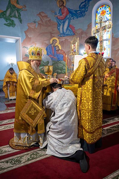 После евхаристического канона митрополит Александр совершил диаконскую хиротонию инока Серафима (Кандерова).