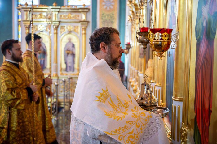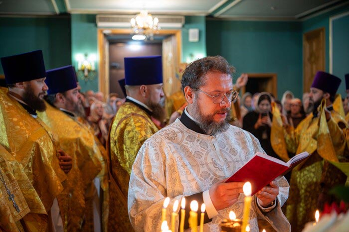 По запричастном стихе иерей Андрей Крутин огласил послание митрополита Астанайского и Казахстанского Александра по случаю 15-летия Костанайской епархии.