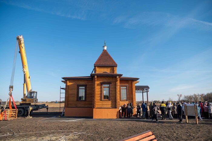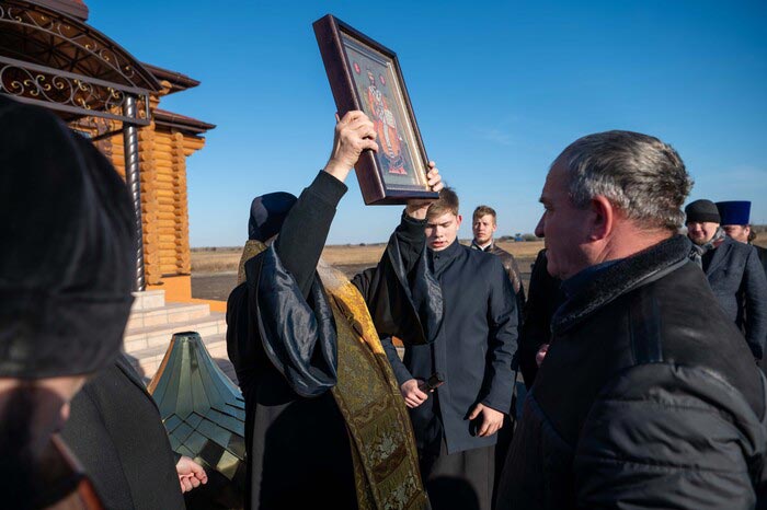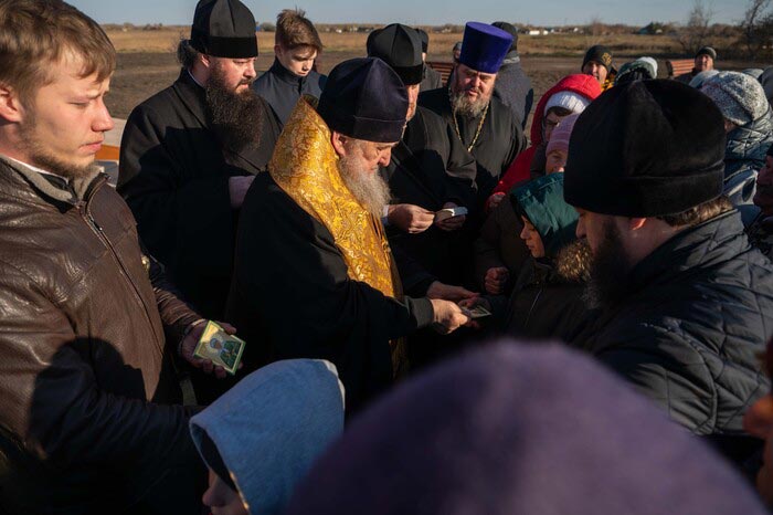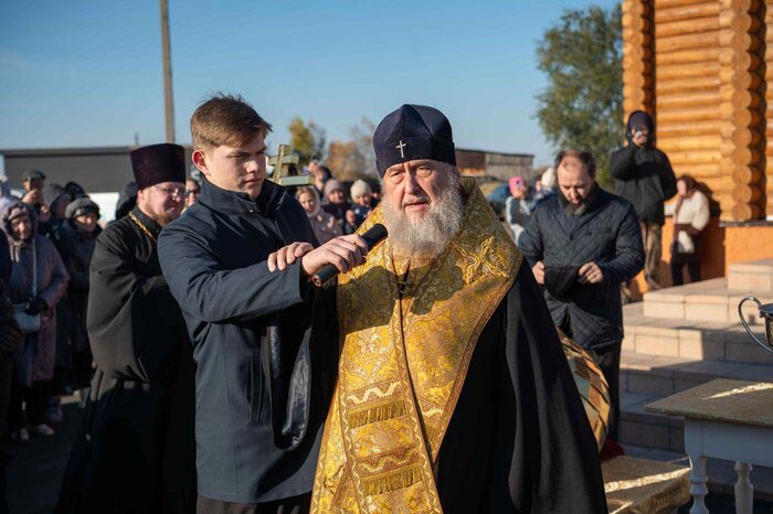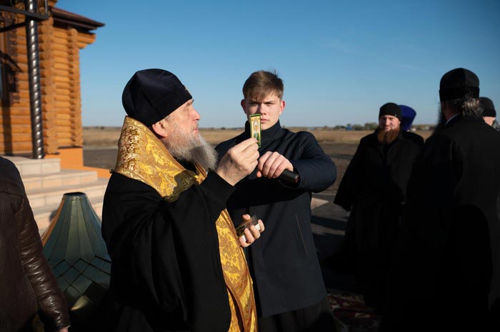 12 октября 2025 года. Костанайский район, Костанайская область. Митрополит Астанайский и Казахстанский Александр посетил строящуюся церковь во имя святителя и чудотворца Николая в селе Владимировка.