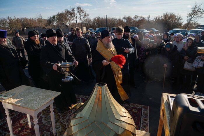 Глава Православной Церкви Казахстана совершил чин освящения купола и креста строящегося Никольского храма.