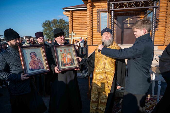 В благословение приходской общине Никольского храма архипастырь передал святые иконы – «Христос – Великий Архиерей» и Феодоровский образ Царицы Небесной.
