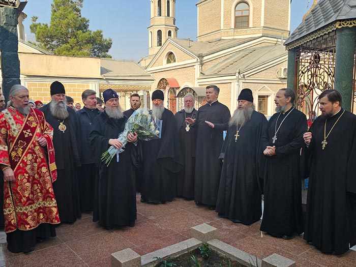 20 ноября 2025 года. Шымкент. Митрополит Астанайский и Казахстанский Александр, находящийся с архипастырским визитом в Чимкентской епархии, совершил литию по приснопамятному архиепископу Елевферию (Козорезу), погребенному у алтаря Никольского кафедрального собора.