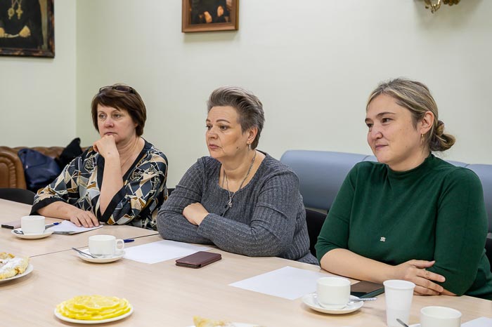 Участниками совещания стали – проректор по учебной работе Алма-Атинской духовной семинарии Петр Бахтияров, заведующий канцелярией духовной школы иерей Александр Шишлов, заведующая регентским отделением, хормейстер митрополичьего хора В.В. Дударева, преподаватели музыкальных дисциплин пастырского и регентского отделений семинарии.