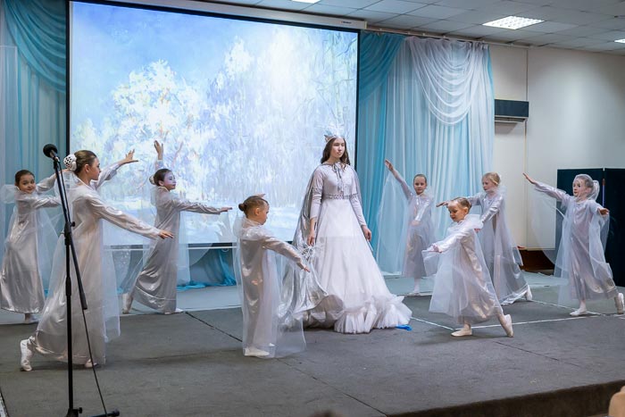 В ходе выступления ребята представили номер «Ложкари», танцевально-поэтическую композицию «Времена года» на музыку Антонио Вивальди, а также мини-спектакль «Сказка о рыбаке и рыбке».