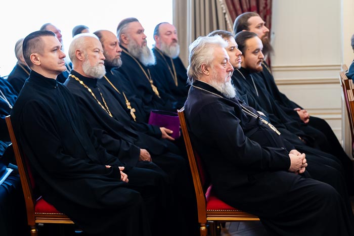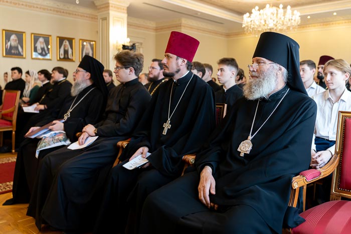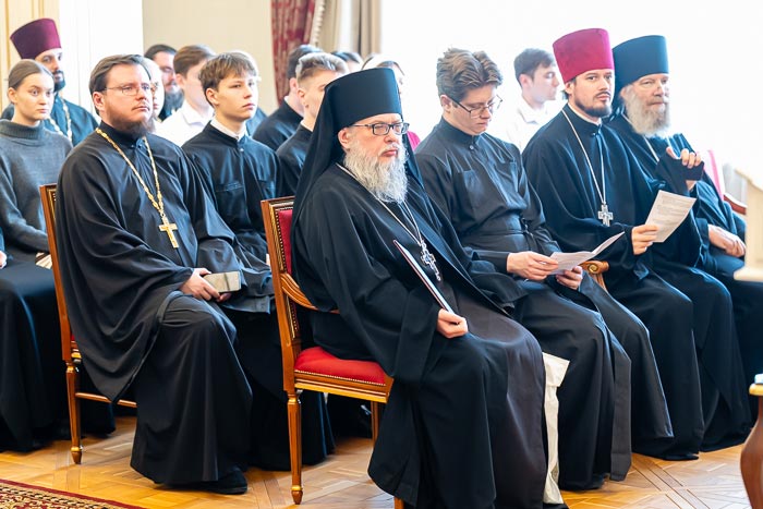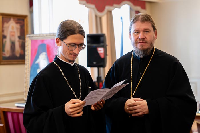Ректор Казанской православной духовной семинарии иерей Никита Кузнецова, проректор по общим и социальным вопросам Кузбасской православной духовной семинарии протоиерей Алексей Нагорный и заведующий библиотекой Минской духовной семинарии, кандидат богословия архимандрит Никодим (Генералов) обратились с приветственными словами к участникам научного форума.