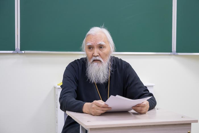 Далее отец ректор представил вниманию слушателей доклад на тему: «Положение православного духовенства и мирян в Казахской ССР в 1943-1958 гг.».