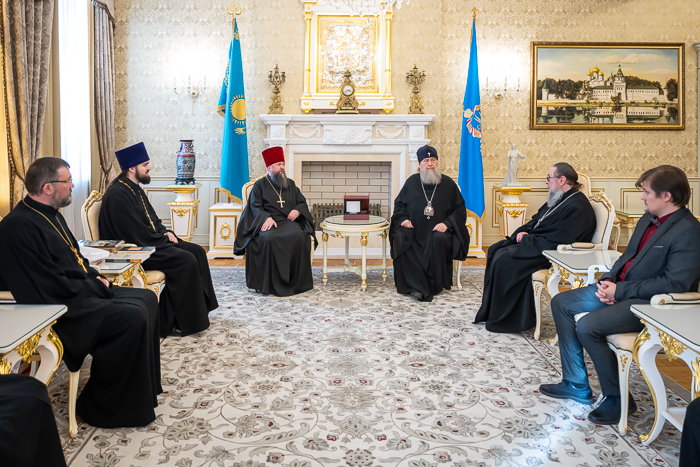 В завершение встречи, прошедшей в доброжелательной атмосфере, Его Высокопреосвященство подарил высоким гостям настольную медаль с изображением архиепископа Софонии (Сокольского), первого иерарха Туркестанской епархии и апостола Семиречья, свой научный труд – книгу «Христианство в Центральной Азии в эпоху Средних веков», последний номер научно-богословского журнала АПДС «Богословский вестник», календарь Митрополичьего округа на 2026 год и икону Собора новомучеников и исповедников Казахстанских.