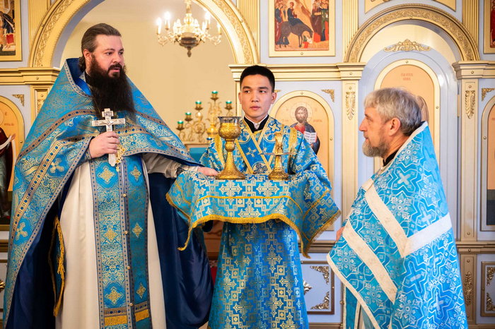 По благословению митрополита Астанайского и Казахстанского Александра богослужение возглавил секретарь Костанайской епархии иеромонах Геннадий (Бурдюжа).