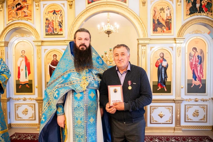 По окончании торжества состоялось награждение старосты храма А.В. Куряченко и благодетелей, внесших значительный вклад в обновление и благоукрашение Покровского храма.