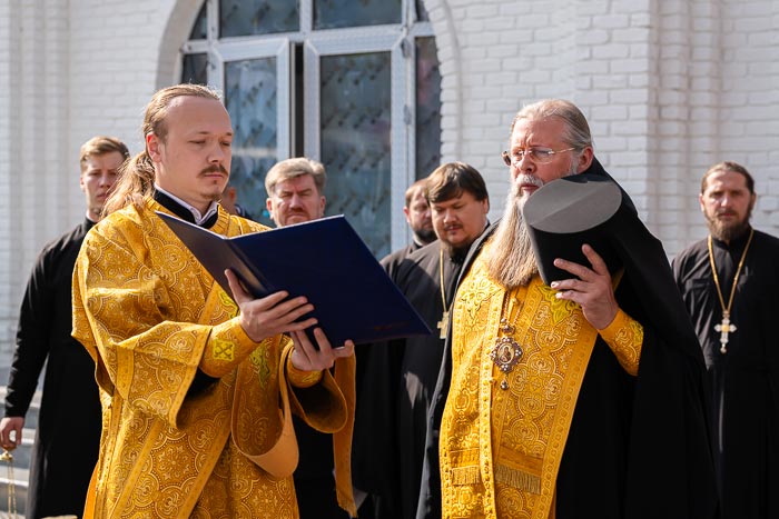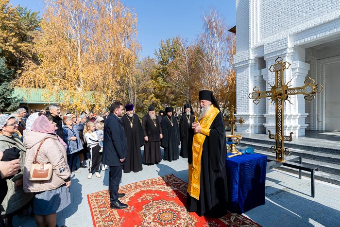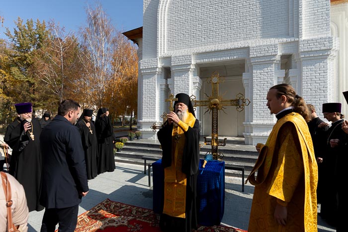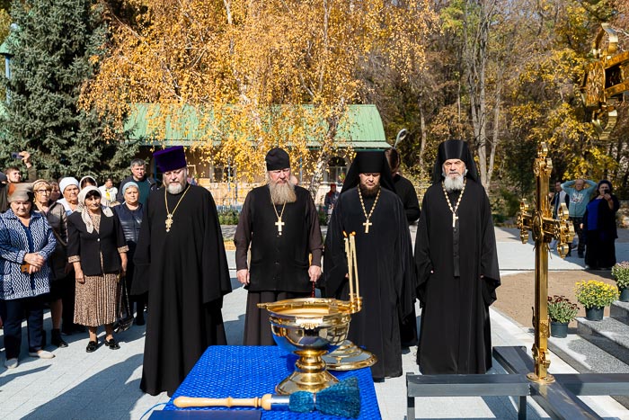 За чином освящения молились: настоятель храма в честь Рождества Богородицы протоиерей Николай Ткаченко, помощник ключаря Вознесенского кафедрального собора Алма-Аты иерей Андрей Шкляр, руководитель административного секретариата Главы Митрополичьего округа иерей Георгий Сидоров, руководитель службы митрополичьего протокола протодиакон Роман Головин; духовенство Иссыкского и Талгарского благочиннических округов.