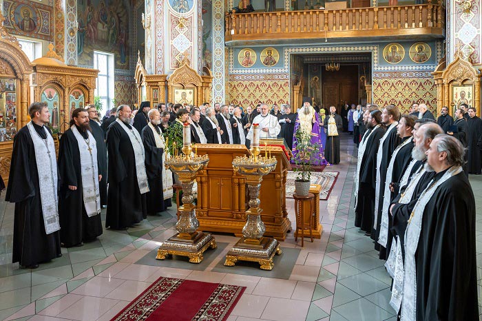 Его Преосвященству сослужили: благочинный храмов Южной столицы, настоятель Никольского собора протоиерей Валерий Захаров; духовник Алма-Атинской епархии архимандрит Иоанн (Сазонов); настоятель храма в честь иконы Божией Матери «Всех скорбящих Радость» в городе Алма-Ате протоиерей Евгений Воробьев; ключарь Христорождественского собора протоиерей Александр Гайченя; настоятель Богоявленского храма протоиерей Валерий Шаврин; настоятель Параскевинского храма протоиерей Иоанн Лопатин; ключарь Петропавловского храма протоиерей Кирилл Шкляр; настоятели и духовенство храмов Алма-Аты,