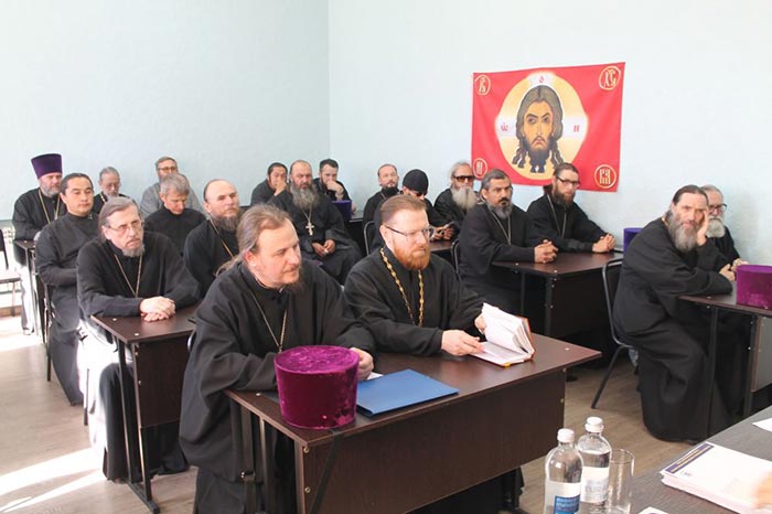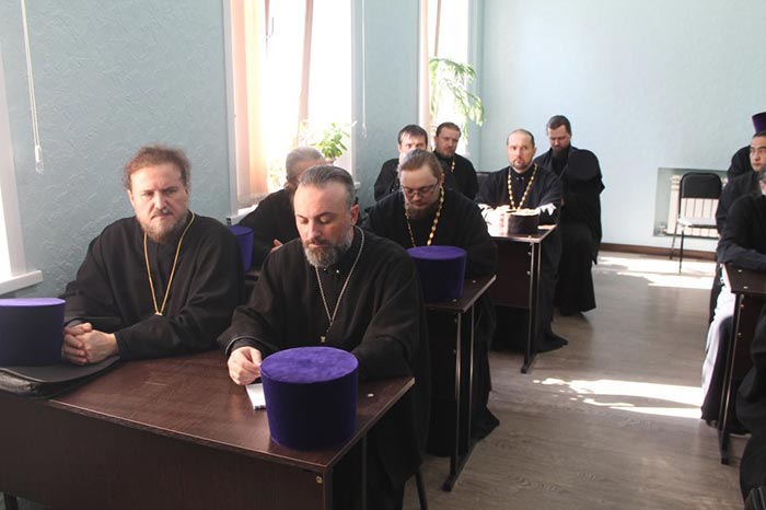 В собрании приняли участие: благочинные церковных округов, настоятели и клирики храмов, руководители епархиальных отделов и сотрудники епархиального управления.
