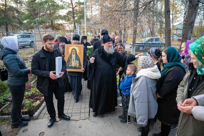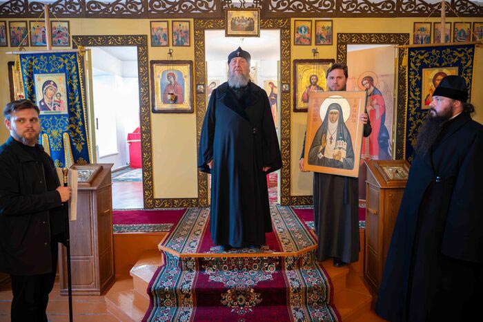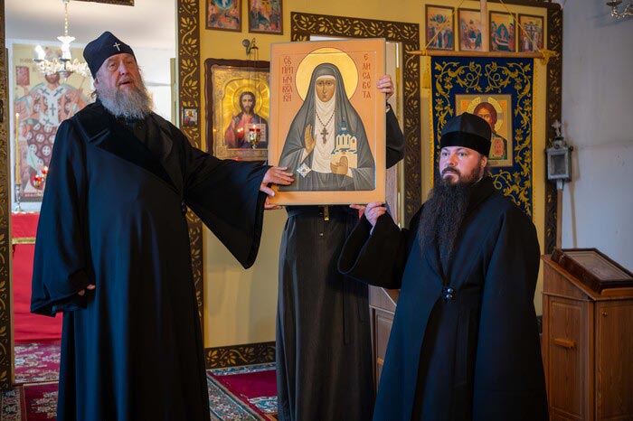 В дар обители Глава Митрополичьего округа передал особую святыню – икону святой преподобномученицы великой княгини Елисаветы Феодоровны с частицей ее гроба, хранящегося на Святой Земле – в церкви равноапостольной Марии Магдалины в Гефсимании. Святая княгиня Елисавета в начале ХХ столетия передала в безвозмездный дар Иверскому Кустанайскому монастырю земельный надел, на котором расположилось подворье обители с храмом. Игумения Анна (Бородина) лично приезжала в Санкт-Петербург для решения этого вопроса и встречалась с Великой княгиней Елисаветой Феодоровной. Современный Иверско-Петропавловский монастырь располагается именно на этом участке, переданном обители в 1913 году.