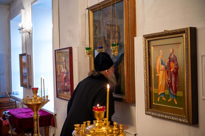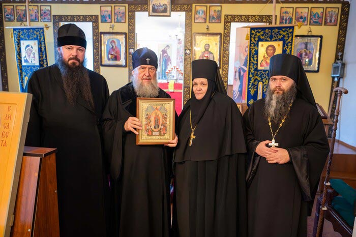 По прибытии архипастырь вместе с духовенством посетил Петропавловскую церковь и совершил славление у Иверского образа Пресвятой Богородицы, после чего пообщался с настоятельницей и насельницами обители. Владыка митрополит тепло поздравил игумению Нику с годовщиной возведения в игуменское достоинство и подарил на молитвенную память и в благословение на труды икону Пресвятой Богородицы «Всех скорбящих Радость».