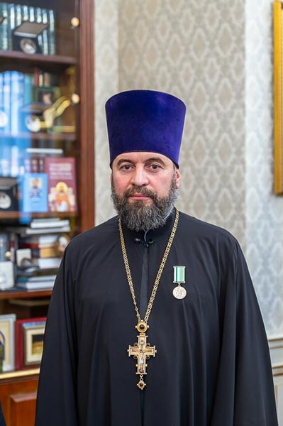 Архипастырь вручил протоиерею Александру медаль Синодального отдела по взаимоотношениям Церкви с обществом и СМИ «Мир и Согласие» II степени. Награды священнослужитель удостоен за труды по развитию церковно-общественных отношений в Республике Казахстан и вклад в укрепление межнационального мира и межконфессионального согласия.