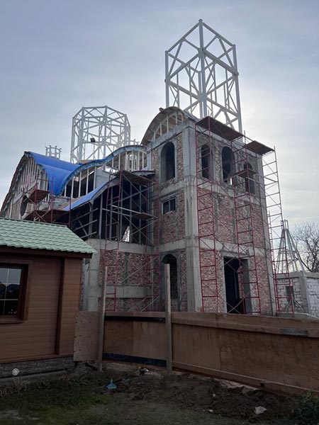Далее архипастырь ознакомился с работами по возведению кирпичного храма во имя святых бессребренников и чудотворцев Космы и Дамиана, который созидается на средства благотворителей и добровольные пожертвования верующих при поддержке фонда «Eleos-Meirim».