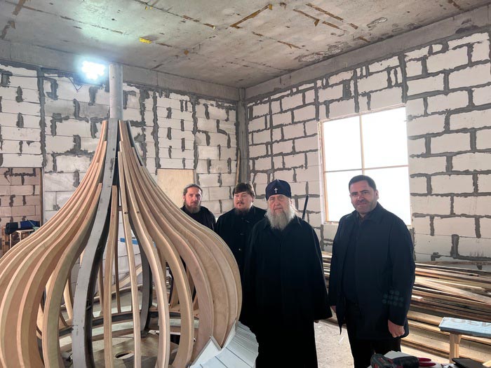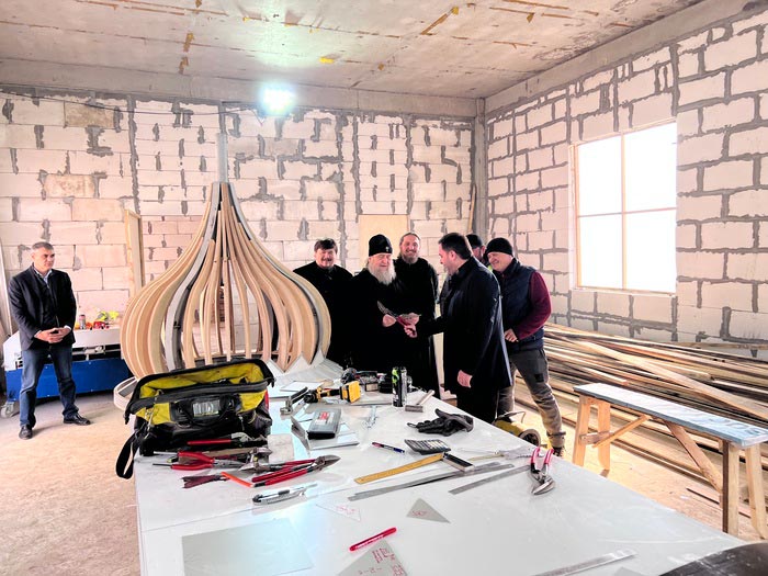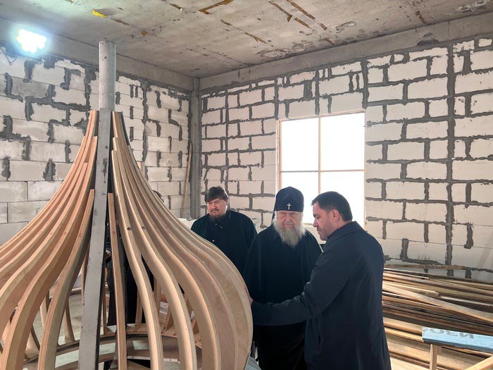 Митрополит Александр побывал в мастерской, где изготавливают металлические покрытия для куполов строящейся церкви.