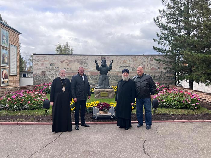По прибытии Его Высокопреосвященство возложил цветы к памятнику Святейшему Патриарху Пимену, по благословению которого в 1980 году было открыто предприятие. Была пропета «Вечная память» почившему Первосвятителю.